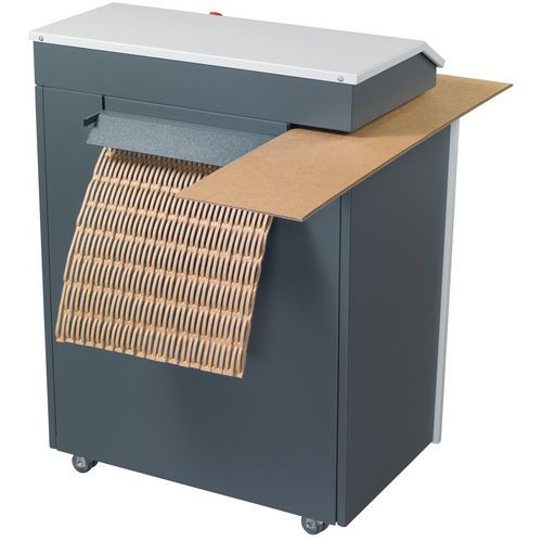 La machine de matelassage pour emballage permet de transformer en une étape les vieux cartons en matelas de protection ou en matériau de remplissage matelassé. Peut être utilisé de façon mobile et flexible comme appareil de table compact.