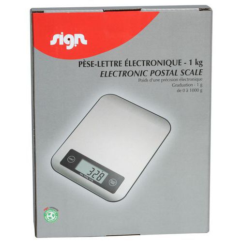 | Intitulé du produit | Pèse-lettre et paquet Sign Office portée 1 kg, Métrologie légale: oui, Type de balance: Pèse-lettre/paquet |