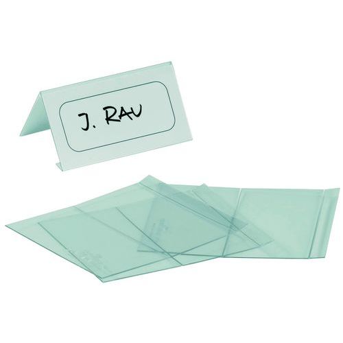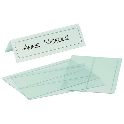 | Intitulé du produit | Chevalet porte-nom PET, Hauteur: 61 mm, Matériau: Plastique, Emballage recyclable: Oui - 100 % |