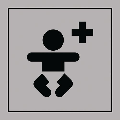 Le Pictogramme PI PF 036 indique au public l'emplacement d'une installation où des soins de santé pour enfants.