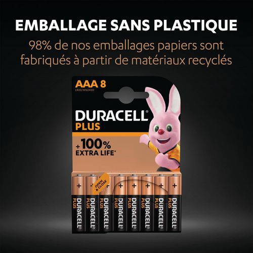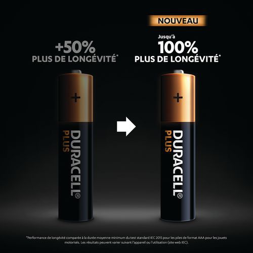 | Intitulé du produit | Pile Alcaline AAA Plus 100 %, Type de pile: AAA/LR03, Nb de piles: 8, Tension: 1.5 V, Technologie: Alcaline |