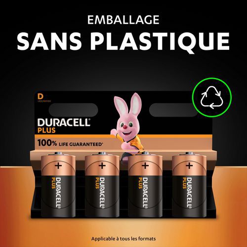 | Intitulé du produit | Pile Alcaline D Plus 100 %, Type de pile: D/LR20, Nb de piles: 2, Tension: 1.5 V, Technologie: Alcaline |