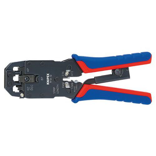 | Capacité (Dimensions) | RJ 10 (à 4 pôles) 7,65 mm RJ 11/12 (à 6 pôles) 9,65 mm RJ 45 (à 8 pôles) 11,68 mm |
