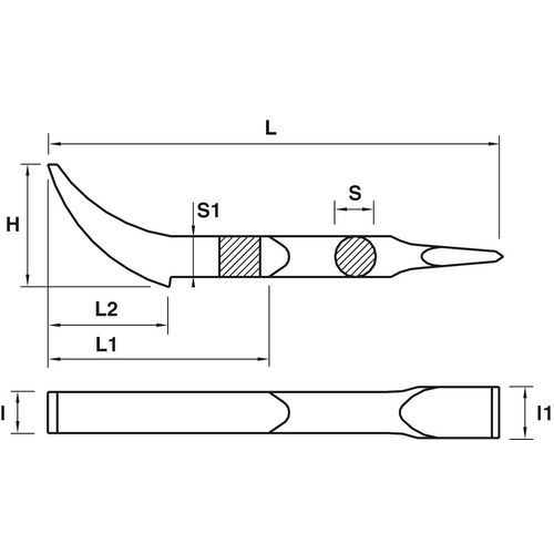 - Octogonale ou ronde avec taillant courbé et pointe.