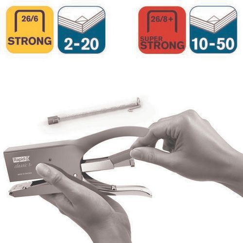- Chargement arrière pratique, permet de remplacer facilement vos agrafes Rapid n°26 (26/6 Strong ou 26/8+ Superstrong) pour un gain de temps optimal.
