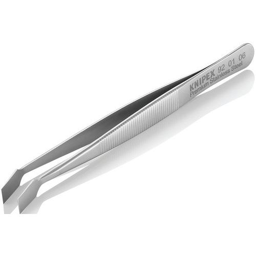 | Intitulé du produit | Pince brucelle acier inoxydable 120mm rectangulaire coudée, Longueur: 12 cm, Type de bec: Coudées à 30° |