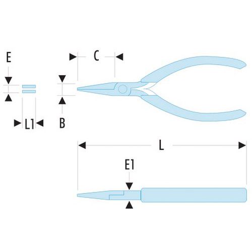 - Becs lisses avec les angles intérieurs arrondis pour ne pas blesser les pièces manipulées.