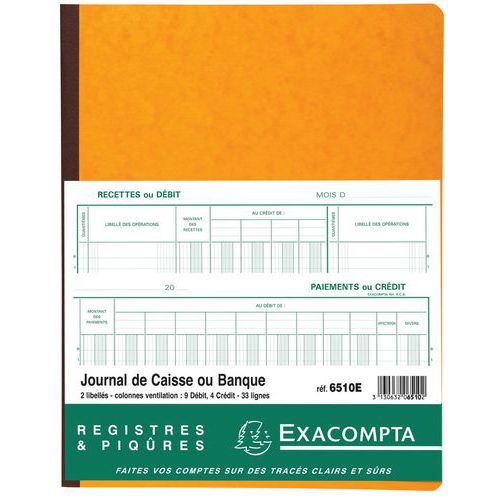 | Modèle | Piqûre 32x25 Journal de caisse ou banque 9 débit |