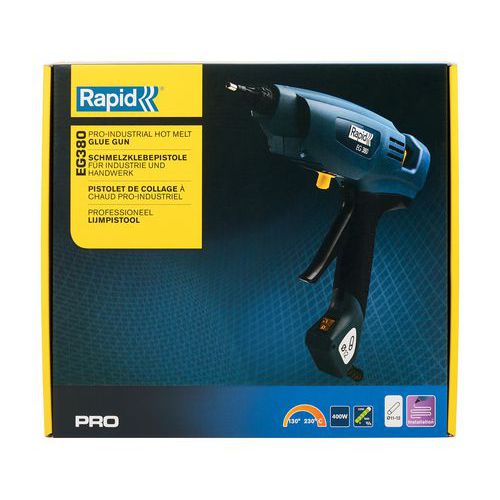| Intitulé du produit | Pistolet à colle EG380, Pour bâton de colle Ø: 12 mm, Capacité d'extrusion: 2200 g/h, Buse Ø: 3 mm |