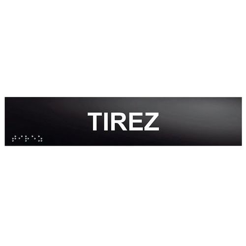 | Intitulé du produit | Plaque de porte en braille et en relief Tirez, Adhésif: non, Matériau: PVC, Type de panneau: Indication |