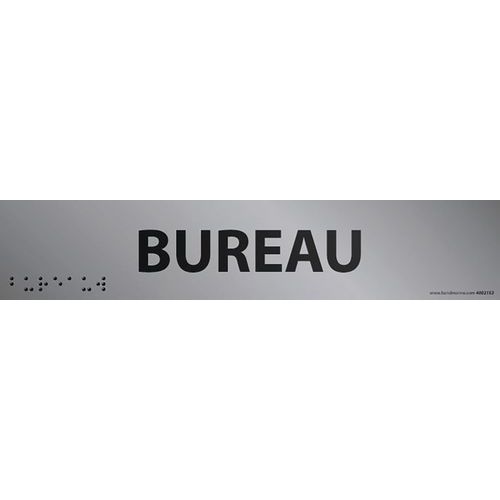 Plaque en braille et relief Bureau Existe en 2 couleurs Un marquage des textes en relief avec la traduction braille en dessous Plaque en forex d'une épaisseur de 3 mm. Le texte est inscrit en relief, en majuscule, avec en dessous la traduction en braille grâce à l'insertion de billes en inox.