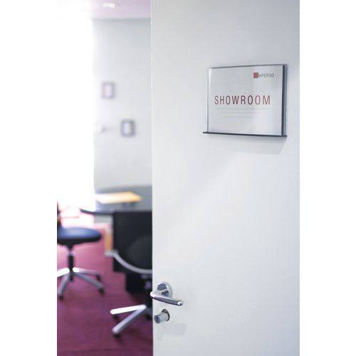 1 plaque, 3 fixations : à poser, au mur et en drapeau.
