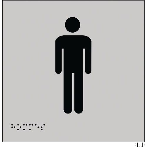 Plaque en relief et braille toilettes Hommes. Moderne. Esthétique. Disponible en 3 couleurs. Fixation auto-adhésive. Pour permettre au malvoyants de retrouver les toilettes pour hommes. Fabriqué en UE Accessibilité handicapé