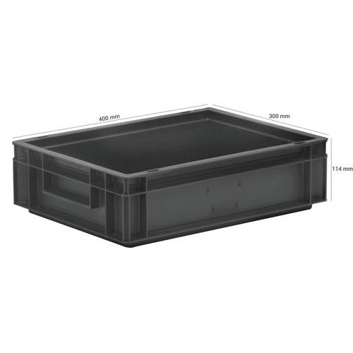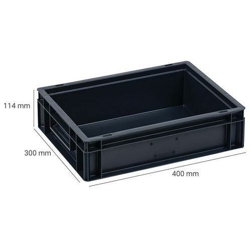 Bac norme europe, Capacité: 10 L, Gerbable: oui, Hauteur hors tout: 114 mm, Largeur hors tout: 300 mm Bac norme europe, Capacité: 10 L, Gerbable: oui, Hauteur hors tout: 114 mm, Largeur hors tout: 300 mm