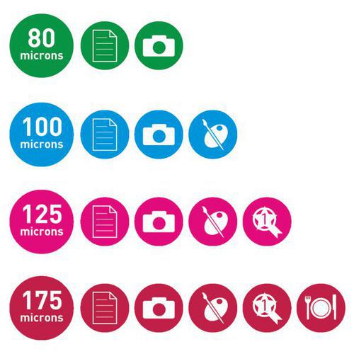 - Plastifie un document A4 (75 microns) en seulement 23 secondes.