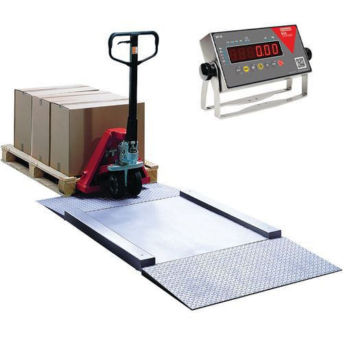 Plate-forme de pesage INOX + 2 rampes d'accès de 1500 et 3000 kg, Métrologie légale: oui, Portée: 3000 kg
