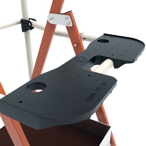 - Porte-outils compartimenté amovible, résistance 25 kg, avec crochets intégrés (10kg).