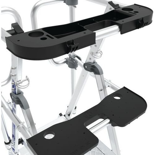 Plate-forme pliante Sherpascopic Saloon avec garde-corps rigide 4 côtés. Dispose d'un portillon type Saloon à fermeture automatique et pliant. Marches antidérapantes 80 mm (plan fixe) et 60 mm (plan télescopique). Plancher grand confort antidérapant en aluminium. Stabilisateurs rétractables à réglage millimétrique. Plans télescopiques permettant le décalage de niveau. Système de réglage tous les 23 cm de la hauteur intuitif et sécurisé. Possède un porte-outils compartimenté amovible à résistance de 25 kg avec crochets intégrés (maxi 10kg).