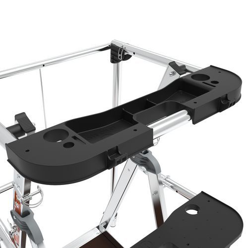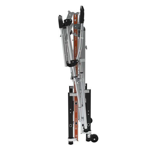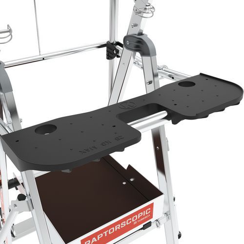 Pratique : cette plate-forme est munie d'une tablette amovible pouvant supporter 25 kg et d'un système de réglage de la hauteur intuitif pour s'adapter à la configuration des chantiers.