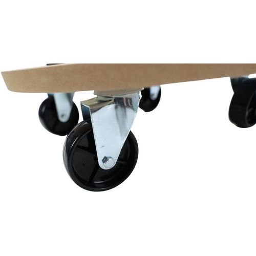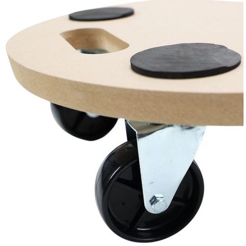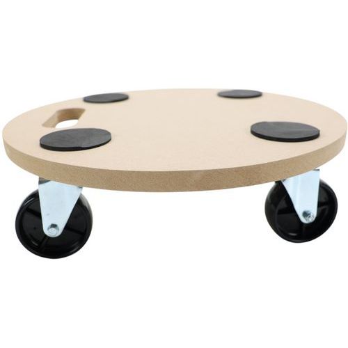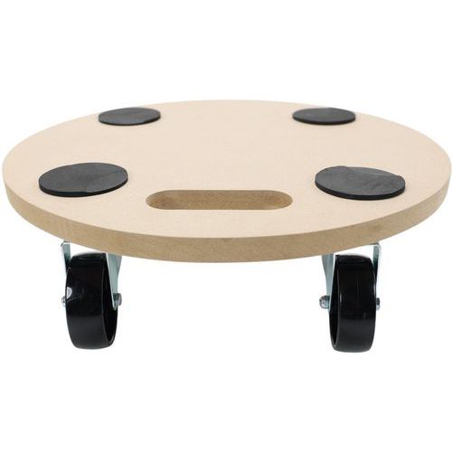 - Plateau roulant rond avec socle bois équipé de 4 roulettes en polyamide.