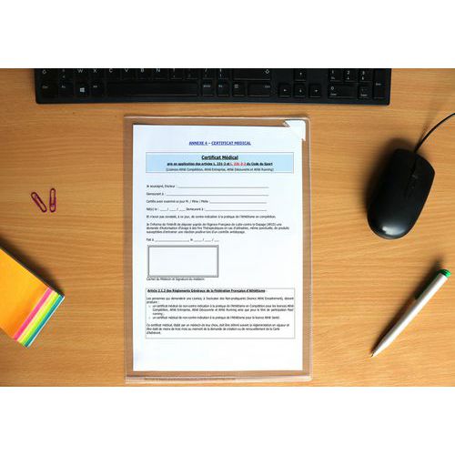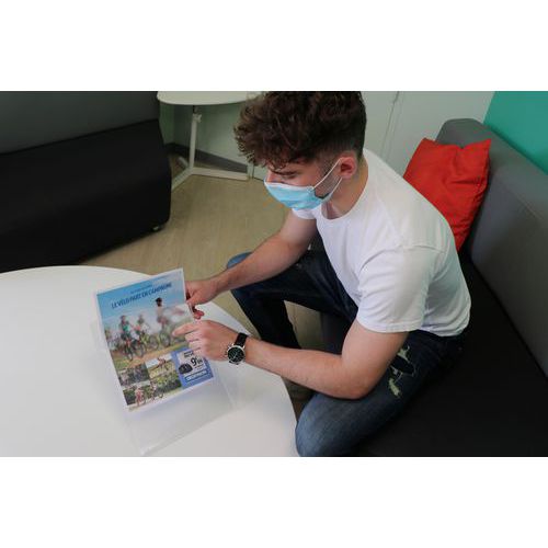 Pochette d'affichage antireflet avec adhésif repositionnable.