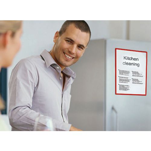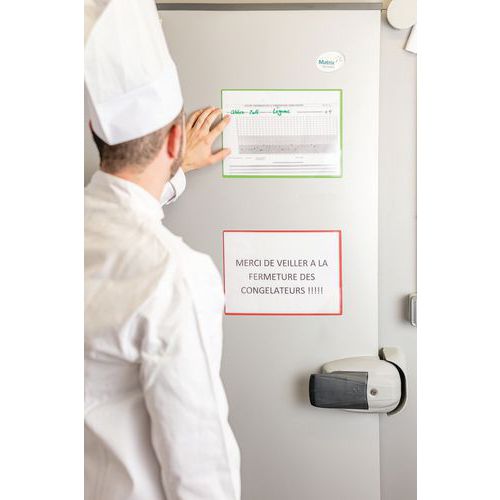 Pochettes d'affichage magnétique Kang Easy Load se fixe sur toutes les surfaces métalliques. Dos entièrement magnétique, tenue irréprochable. Ouverture sur 2 côtés pour une insertion facile des documents. Fermeture coin Easy load : pratique et efficace pour insérer et extraire les documents. Installation simple et rapide, sans vis ni clou, se retire sans laisser de traces. Utilisation portrait et paysage. Solution d'affichage à utiliser sur les machines, portes, tableaux métalliques, réfrigérateurs… Poche en PVC avec dos magnétique. Peut contenir jusqu’à 10 feuilles de papier 80 g. Fonds entièrement vert.