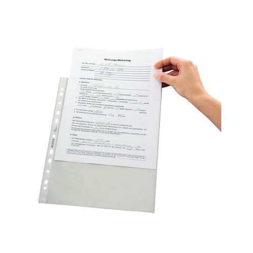 | Intitulé du produit | Pochette perforée A4, polypropylène transparent lisse, 75µ, Leitz, Coloris: Transparent |