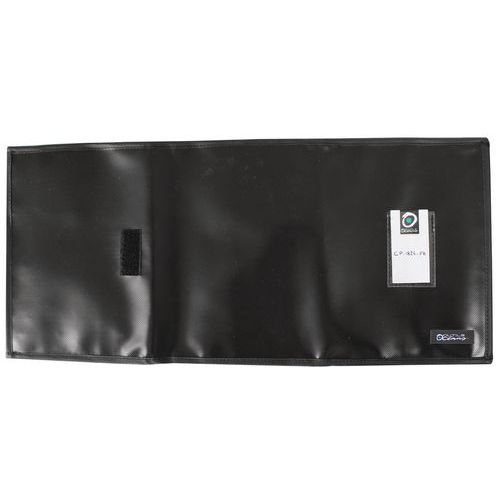 Pochette pour clés et papiers véhicules. 1 compartiment pour papiers véhicule (Carte grise, Assurance). 1 compartiment pour cartes (essence, entretien véhicule….). 1 anneau brisé pour clé. 1 porte étiquette sur face avant (nom, immatriculation véhicule….). Fermeture par scratch et finition par bordure.