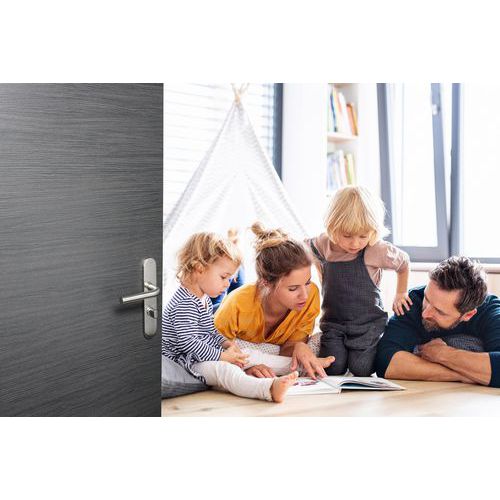 Poignée de porte inox sur plaque Tempo Pop, Modèle: A condamnation, Matériau: inox
