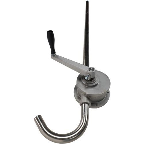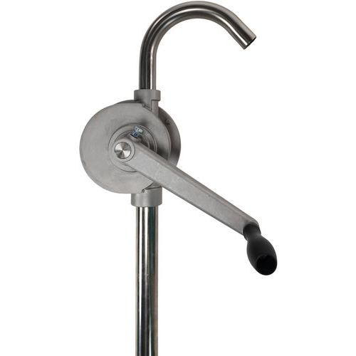 Pompe manuelle rotative inox avec un débit calibré de 0.24 litre par rotation, cette pompe offre une précision cruciale pour le dosage et le remplissage de petits ou moyens contenants.