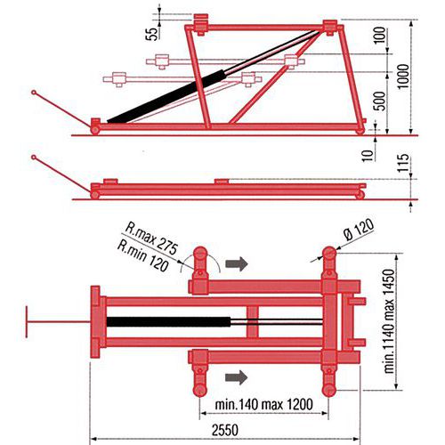 | Intitulé du produit | Pont de levage oléopneumatique 2500 kg, Longueur: 2554 mm, Largeur: 1015 mm, Poids: 270 kg |