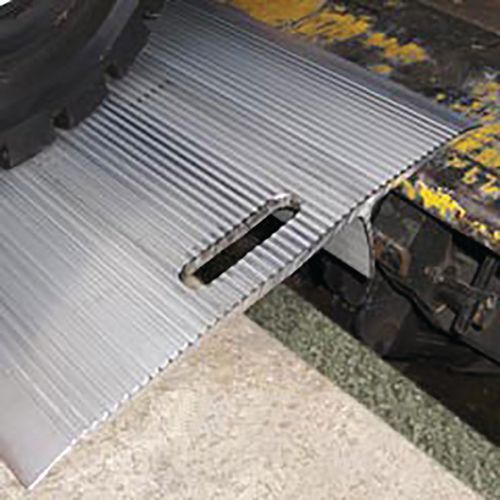 Pont de chargement PL, forme extra plate, pour le passage de matériels ayant de faible garde au sol.