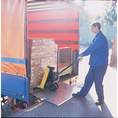 Pour charger et décharger des véhicules avec des transpalettes à main, des conteneurs mobiles, des...