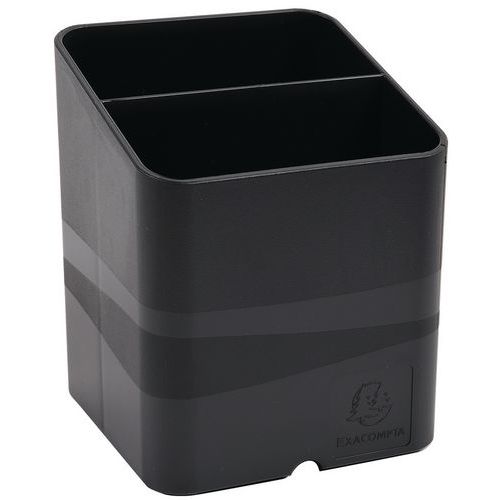 | Intitulé du produit | Pot à crayons PEN-CUBE plastique recyclé, Matériau: PVC, Nb de compartiments: 2, Coloris: Noir |