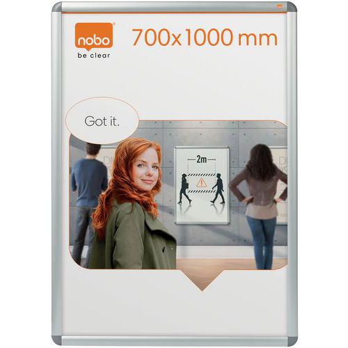 | Intitulé du produit | Porte-affiche clipsable Nobo format 700 x 1 000 mm, Largeur: 755 mm, Hauteur: 106 cm |