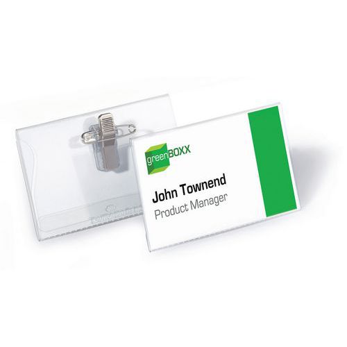 | Intitulé du produit | Porte-badge avec pince combi, Coloris: Transparent, Longueur: 90 mm, Hauteur: 54 mm, Nb de pièces: 50 |