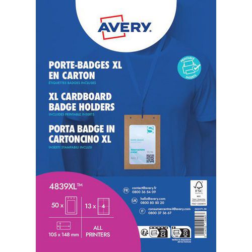 | Intitulé du produit | Porte-badges en carton format A6 avec inserts imprimables, Matériau: Carton, Fente d'accès: oui |