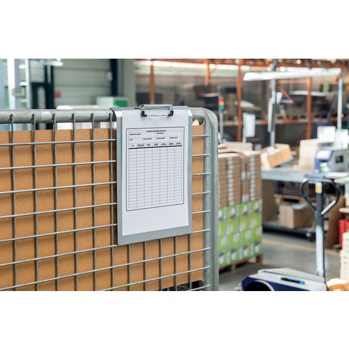 | Intitulé du produit | Porte-bloc à suspendre, Matériau: Aluminium, Coloris: Gris, Document format: 210 x 297 mm (A4) |