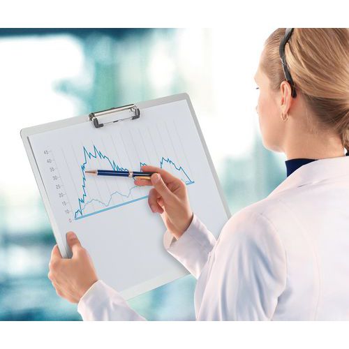 | Intitulé du produit | Porte-bloc noble en aluminium anodisé pince arceau A3 paysage, Matériau: Aluminium, Coloris: Gris |