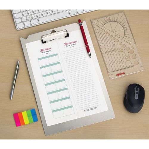 | Intitulé du produit | Porte-bloc aluminium, Matériau: Aluminium, Coloris: Gris, Document format: 210 x 297 mm (A4), Largeur: 240 mm |