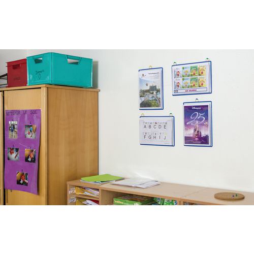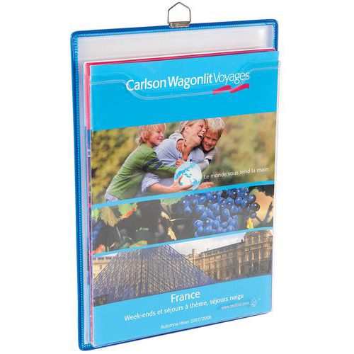 Porte-brochures Tarifold pratique et fiable, format A4 bleu.