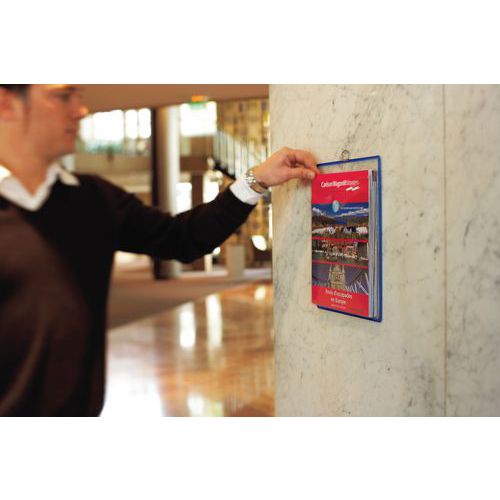 Porte-brochures Tarifold pratique et fiable, format A4 bleu.