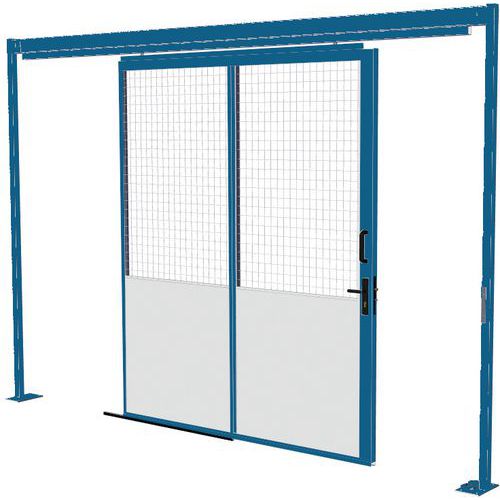 Porte coulissante pour cloisons d'atelier tôle d'acier- Panneau grillagé - Hauteur 2,51 m