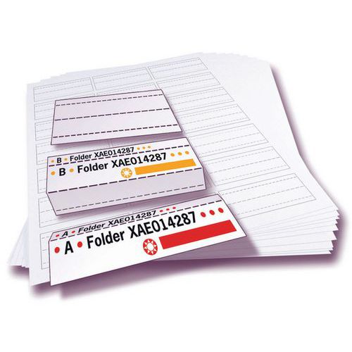 | Intitulé du produit | Porte-étiquette pour dossier suspendu, Longueurs: 50 mm, Nb d'étiquettes/planche: 25 |