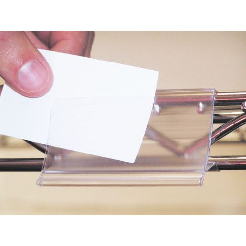 | Intitulé du produit | Porte-étiquette pour roll-conteneur, Modèle: À clip, Largeur hors tout: 75 mm, Hauteur hors tout: 43 mm |