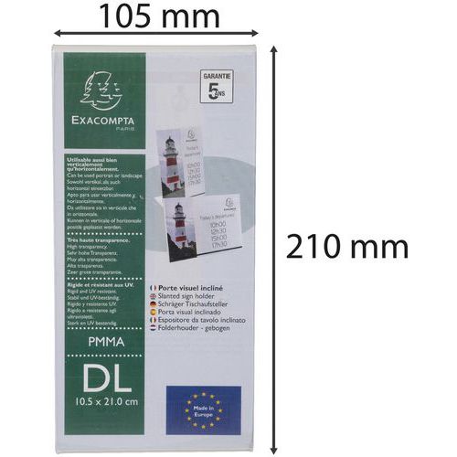 Porte-visuel droit vertical, Matériau: Acrylique, Coloris: Transparent, Hauteur hors tout: 212 mm