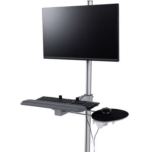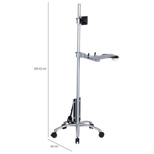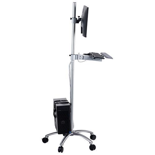 Poste de travail mobile d'ordinateur réglable, Charge maxi: 30 kg, Hauteur maxi: 185.42 cm, Coloris: Gris