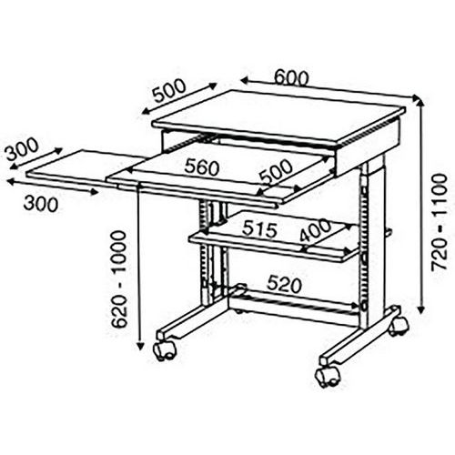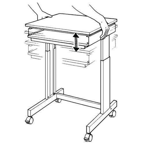 Vous pouvez régler et modifier comme bon vous semble la hauteur de la tablette (72-110 cm) destinée à accueillir l'imprimante et la tour d’ordinateur.