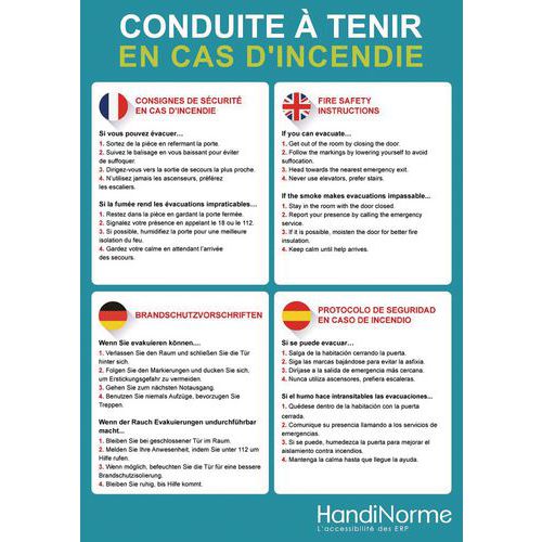 | Intitulé du produit | Poster A3 consignes en cas d'incendie en 4 langues, Largeur: 297 mm, Coloris: Bleu, Adhésif: non, Rigide: non |