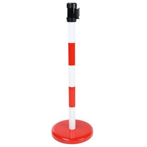 Poteau acier à sangle - Manutan Expert Poteau à sangle étirable hachurée offrant ainsi une délimitaiton claire en un coup d'oeil. Ce produit est conçu pour un usage professionnel. Garantie client : 10 ans